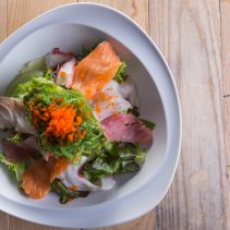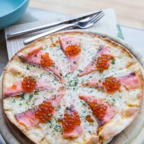 หลังจากชื่นชมความน่ารักสวยงามของร้านแล้ว โปรดอย่าลืมสั่งเมนูต่างๆมารับประทานกัน ไม่ว่าจะเป็น สลัดปลาดิบ เสิร์ฟโรยหน้าพร้อมกับยำสาหร่ายสไตล์ญี่ปุ่น และไข่กุ้งสีส้มน่ารับประทาน ต่อด้วยเมนูฟิวชั่นอย่าง สปาเก็ตตี้ผัดขี้เมาทะเลรสชาติจัดจ้านแบบไทยๆ สเต็กสันนอกเนื้อนุ่ม พิซซ่าแซลมอนรมควันแผ่นแป้งบางกรอบ และ พาสต้า