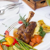 ปรุงแบบหม้อไฟสไตล์ญี่ปุ่นที่เรีกว่านาเบะ ซึ่งมีทั้งผักนานาชนิดและเนื้อหมูสไตล์ที่ค่อยๆปรุงสุกในหม้อไฟ วางเคียงคู่กับถ้วยเส้นข้าวซอยและเครื่องเคียงต่างๆ ตามด้วยอาหารตะวันเป็น ขาแกะตุ๋น เสิร์ฟพร้อมกับมันบดและผักตามฤดูกาล ปิดท้ายด้วยเครื่องดื่มชื่นใจอย่าง Chala Number 6 ม็อกเทลสีแดงสด หอมกลิ่นดอกเอเดลเคล้ากับรสชาติของน้ำทับทิมและเนื้อผลไม้สดต่างๆ Chala lagoon ความหวานเปรี้ยวซ่าของสไปร์ทผสมมะนาว และ green delight หอมกลิ่นใบมินต์ปั่นผสมกับน้ำมะนาวและน้ำผึ้ง
