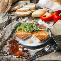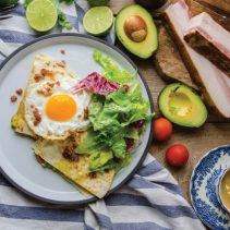 เริ่มต้นมื้อเช้าด้วย honey ham croque monsieur ขนมปังซาวร์โดวางประกบกับแฮมหมูอบน้ำผึ้ง สลับรสชาติกับ เชดด้าชีส กูแยร์ชีส ทานคู่แยม mango chutney ต่อมาเป็น bacon avocado quesadilla มื้อเช้าที่ผสมผสานอาหารของชาวแม็กซิกัน โดยนำแป้งตอติญ่ามาสอดไส้ความอร่อยของวาคาโมเล่ พร้อมวางคู่กับไข่ดาว