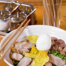 Other non-noodly dishes include rice topped with crispy pork, rice topped with grilled pork and rice topped with pork knuckle. Porked out? Wash it all down with some roselle or chrysanthemum juice. 79/5 Arak Road, T. Phra Sing (Located in The Chiang Mai old city) Open 9:30 – 3 am (closed every 1 and 16 of month) Tel. 081 591 5622 Facebook: ต้าซื่อสี่ บะหมี่เบตง เชียงใหม่ – Dashixi ChiangMai