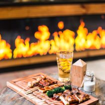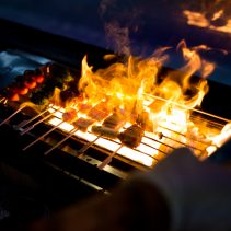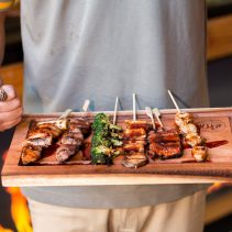 เปิดมื้อความอร่อยด้วยปิ้งย่างยากิโทริในราคาเริ่มต้นตั้งแต่ 15 บาท สามารถเลือกรับประทานแบบมังสวิรัติกลุ่มผักนานาชนิด อาทิ บร๊อคโคลี่ เห็ดออรินจิ กระเจี๊ยบ และ ต้นหอมญี่ปุ่น หรือมาเติมพลังด้วยกลุ่มโปรตีนด้วย ปีกไก่ อกไก่ สะโพกไก่กับต้นหอมญี่ปุ่น ไส้กรอกค๊อกเทล เบค่อนพันค๊อกเทล สันคอหมู และ หมูสามชั้น ตามด้วยวัตถุดิบเกรดพรีเมี่ยมอย่าง เนื้อโคขุนไทย เนื้อวากิวญี่ปุ่น หอยเชลล์ และ ปลาไหล ทุกเมนูปิ้งย่างจะเสิร์ฟพร้อมกับน้ำจิ้ม 3 สไตล์ คือ ซอสหวานญี่ปุ่น น้ำจิ้มซีฟู้ด และเกลือ โดยมีพนักงานเป็นผู้คอยแนะนำการจับคู่รสชาติปิ้งย่างกับน้ำจิ้ม