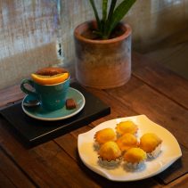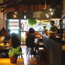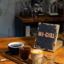 The highlight of Ma-Chill Coffee is the citrus cappuccino using lightly roasted Thai coffee beans which is then ground with orange and chocolate, a delicious and aromatic drink. The ice coffee honey comb is another popular beverage, with the sweet scent of honey and the caffeine-filled shot of cold espresso mixed with fresh palm juice.