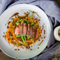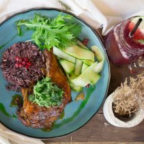 เริ่มต้นด้วยอาหารเช้าอย่าง poached eggs on green เมนูเพื่อสุขภาพที่เต็มไปด้วยสีสันของผักนานาชนิด เสิร์ฟพร้อมกับแซลมอนรมควัน อัลมอนด์ และ ไข่ดาวน้ำ ถัดมาเป็นเมนูจานใหม่ของร้าน คือ สเต็กกับมันฝรั่งอบ (steak and roasted potato) เมนูสเต็กขนาดพอดีคำอิ่มท้อง รับประทานคู่กับมายองเนสรสกระเทียมอัลยอลี (garlic aioli sauce) ถัดมาเป็น ไก่ลาบ ซึ่งเป็นเมนูที่ได้รับสูตรตกทอดภายในครอบครัวร้านคาเฟ่ Natwat ประยุกต์จากเมนูไก่พริกไทยดำ มาผสมกับไก่พริกลาบ ปรุงแบบขลุกขลิกแห้ง เสิร์ฟพร้อมกับข้าวหุงกับน้ำสต๊อกไก่สไตล์ฝรั่งเศส ต่อด้วย เค้กปู (Crap Cake) จัดวางเคียงคู่กับไข่น้ำทอด ตกแต่งจานด้วย อะโวคาโด และ สลัดไมโครกรีน ปิดท้ายด้วยเครื่องดื่มรสหวานเย็นชื่นใจ กับเมนูเบอร์รี่รวมผสมกับลาเวนเดอร์ไซรัป