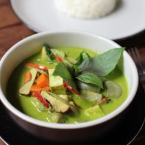 เมนูแนะนำสำหรับผู้ทานมังสวิรัติและคนรักอาหารเจ ได้แก่ ข้าวซอยเต้าหู้ หอมกลมกล่อม และเต็มเปี่ยมด้วยรสชาติอันเข้มข้นของน้ำซุป ต่อด้วยจานหลักของร้านอย่าง ยำผักสมุนไพร เมนูที่มีการผสมผสานผักสลัดใบเขียวและสมุนไพรไทยมายำรวมกับเต้าหู้ เม็ดมะม่วงหิมะพานต์ หัวหอม และพริก ราดเสิร์ฟพร้อมกับน้ำมะขามรสเปรี้ยว และมะพร้าวคั่ว หากใครชื่นชอบการรับประทานเนื้อก็สามารถเปลี่ยนจากเต้าหู้เป็นกุ้งได้เช่นกัน ตบท้ายด้วยเครื่องดื่มเพื่อสุขภาพเป็นน้ำสมุนไพร หรือชาหมักเป็นคอมบูชา