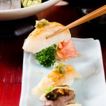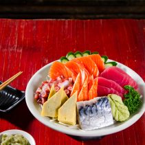 สิ่งที่ขาดไม่ได้สำหรับอาหารญี่ปุ่น คือ เมนูเนื้อปลาดิบต่างๆอย่าง ซาชิมิ ซึ่งประกอบด้วย ปลาแซลม่อน ปลาซาบะ ปลาหมึก ปลามากุโร่ และไข่หวาน หรือจะเป็นเมนูข้าวปั้นซูชิอย่าง ซูชิเอนกาวะ และ ซูซิเนื้อ เป็นต้น