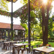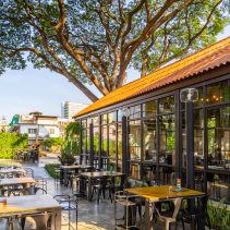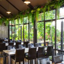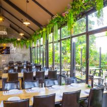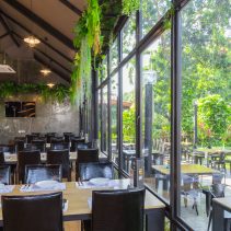 Surrounded by trees, this floor-to-ceiling glass sresaurant is inviting and a charming spot to go to listen to ye olde live bands and enjoy the meal with friends under the beautiful view of a giant raintree.