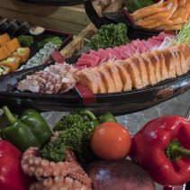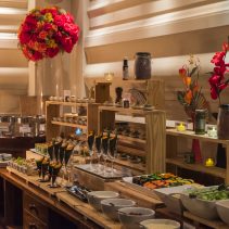 นอกจากจะได้สัมผัสรสชาติเนื้อย่างสไตล์บราซิลเลี่ยนที่จัดเสิร์ฟเวียนโต๊ะตลอดคืนแล้ว แขกทุกท่านยังสามารถรับประทานบุฟเฟ่ต์จากสลัดบาร์ และอาหารนานาชาติ ที่ห้องอาหารจัดเตรียมเป็นโซนไว้อย่างเพียบพร้อม ไม่ว่าจะเป็น มันฝรั่งอบ ผักโขมผัดเนย หรือ ถั่วอบ เป็นต้น แต่พิเศษกว่านั้น เชฟยังได้นำบุฟเฟ่ต์อาหารญี่ปุ่นและซูชิหลากหลายมาให้เลือกลิ้มลอง