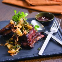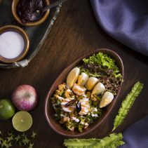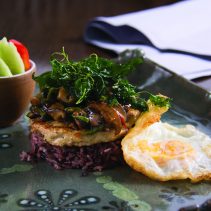 Head to DusitD2’s new Café SOI to sample an authentic flavoured wined bean salad, decadently served with some large river prawns.