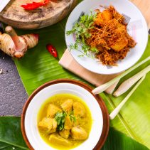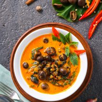 แกงคั่วเห็ดเผาะกับหอยขม: เห็ดเผาะ หรือ เห็ดถอบ เห็ดพื้นบ้านวัตถุดิบหายากอันยอดนิยมของชาวเหนือและชาวอีสาน มีเนื้อสัมผัสกรุบกรอบด้านนอกและนิ่มหวานอยู่ข้างใน นำมาคั่วผัดกับเครื่องเทศพริกแกง ให้มีรสชาติจัดจ้าน เหมาะแก่การรับประทานคู่กับข้าวสวยร้อนๆ