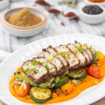 สำหรับเครื่องเทศที่นำมาปรุงในเมนูพอร์คชอปหมักเครื่องเทศกับอะโวคาโดย่าง จะปรากฏอยู่ในขั้นตอนการคลุกเคล้าเครื่องเทศกับพอร์คชอป โดยนำเครื่องเทศต่างๆ 10 ชนิด มาผสมรวมกัน แล้วนำเนื้อหมูมาชุบกับเครื่องเทศ จากนั้นจึงนำไปตากลมในตู้เย็นเพื่อให้เครื่องแห้งติดกับเนื้อหมู แล้วนำออกมาย่างและอบในเตาจนสุก เสิร์ฟพร้อมกับซอสกระเทียมอบ เพียวเร่มันฝรั่ง เบบี้แครอทย่าง และ อะโวคาโดย่าง ดังนั้นเครื่องเทศที่นำมาใช้ มีรายละเอียดและสรรพคุณต่อไปนี้