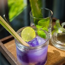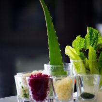 เต้าหู้กับอโลเวร่าซัลซ่า จะเลือกใช้เต้าหู้ถั่วเหลืองอ่อนมารับประทานกับอโลเวร่าซัลล่า ซึ่งประกอบไปด้วย น้ำสลัดน้ำมันงา บีทรูท และ ควินัว ประดับตกแต่งจานด้วยผักสีเขียวสด ส่วนขนมหวานในเมนูชื่อว่า อโลเวร่าลอยแก้ว จะปรุงน้ำเชื่อมขึ้นมาใหม่ โดยมีส่วนผสมทั้งความหวานเปรี้ยวของมะนาว กลิ่นหอมของตะไคร้ และ สีสันสวยงามของดอกอัญชัน