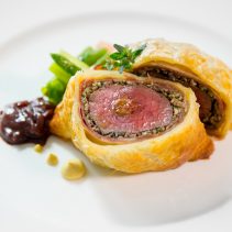 อาหารจานหลักมีให้เลือกรับประทาน 2 รายการ คือ (1) ปลาโดเวอร์โซล นำไปจี่บนไฟอ่อนๆ เสิร์ฟคู่กับหน่อไม้ฝรั่งและซอสเลม่อนเนยไวน์ขาว และ (2) เนื้อกวางเวลลิงตันสันใน ที่ผ่านการหมักปรุงรส พร้อมสอดไส้ด้วยเห็ดทรัฟเฟิลกับฟัวกราส์ พันรอบด้วยพาร์มาแฮม และห่อด้วยแป้งพัฟอีกชั้น จากนั้นนำไปอบจนได้กลิ่นหอม เนื้อสัมผัสของแป้งนุ่มกรอบ แต่เนื้อกวางภายในแป้งยังคงความฉ่ำกลมกล่อมไว้อยู่