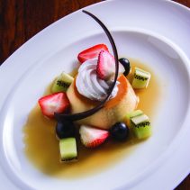 If you are more into your salmon than your lamb, choose the fish menu with calypso salad served with shrimp, avocado and tomato before scooping a big spoonful of the aromatic Mediterranean braised seafood soup in a clear white wine saffron broth, paired perfectly with a cheese bread side, and a Norwegian cut of fresh salmon seared and served on a bed of black squid ink pasta. For dessert, enjoy a rich caramel custard served with mixed fruits for dessert.