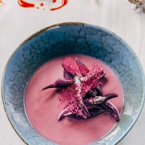 บวชมันม่วง: แรงบันดาลใจมาจากการทำกล้วยบวชชี เพียงแต่เปลี่ยนจากผลไม้มาเป็นมันม่วงในน้ำกะทิอุ่นๆ หอมกรุ่นๆ