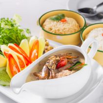 อิ่มอกอิ่มใจกับเครื่องจิ้มไทยโบราณแล้ว โปรดอย่าลืมสั่ง เชียงดาผัดไข่ เมนูยอดฮิตของร้านที่ทุกครอบครัวชื่นชอบรับประทาน ผักเชียงดาไม่แก่หรืออ่อนจนเกินไป มาผัดกับไข่และเครื่องปรุงเพียงเล็กน้อย ก็จะได้เมนูผักที่มีรสชาติกลมกล่อมรับประทาน ถัดมาเป็นเมนูจากแดนภาคใต้ ที่นำมาปรับสูตรใหม่ให้ถูกปากทั้งชาวไทยและชาวต่างชาติ คือ แกงเหลืองปลาปลาเต๋าเต้ย ส่วนผสมน้ำพริกของแกงเหลืองได้รับการพัฒนาใหม่ จนมีความเข้มข้นกลมกล่อม เหมาะกับเนื้อหวานๆ ของปลาเต๋าเต้ยได้อย่างดี