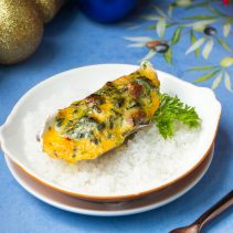 ถัดมาเป็น หอยนางรมคาเวียร์ในซอสแชมเปญซาบายน หอมกลิ่นชีสและรสชาติกลมกล่อม ตามด้วยเมนูกุ้งที่ปรุงด้วยกรรมวิธีซับซ้อนในจานที่เรียกว่า เนื้อปู หอยเชลล์ กุ้งขาวแปซิฟิกคัสตาร์ด เสิร์ฟคู่กับซุปกุ้งแม่น้ำหอมกลิ่นตะไคร้