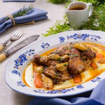1.Roast chicken with pomme puree A roasted half chicken, oven roasted garlic sauce, creamy tomato puree and grilled baby carrots. (The half chicken is basted in clarified butter before roasting in the oven to make the skin extra tasty.)