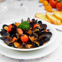 Black Mussel: หอยแมลงภู่สีดำขนาดเล็ก นำเข้าจากประเทศชิลิ ปรุงกับไวน์ขาวจนได้ความหอม เสิร์ฟกับซอสอาราเบียตต้า ซึ่งทำมาจากมะเขือเทศกับปู โดยนำปูผ่านการเคี่ยวหลายชั่วโมง เพื่อนำน้ำสต๊อกของปูมาปรุงรสกับมะเขือเทศ กระเทียม และพาร์สลีย์ เมนูจานนี้จะเสิร์ฟพร้อมกับขนมปังกระเทียม