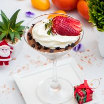 Chocolate Mousse: ดาร์กช็อกโกแลต 71% เนื้อเนียนนุ่มไม่ขมหรือหวานเกินไป ท็อปปิ้งด้วยวิปครีม และสตรอว์เบอร์รี่สด
