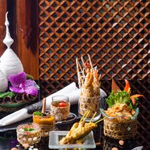 อาหารมิราเทอร์เรสของโรงแรม จัดเสิร์ฟทั้งเมนูอาหารไทยและอาหารตะวันตก ประกอบกับปัจจุบันเทรนด์อาหารไทยกำลังเป็นที่นิยมอย่างกว้างขวางในกลุ่มชาวต่างชาติ เมื่อกลับมามองโจทย์วัตถุดิบพิเศษ”อัลมอนด์” ซึ่งเป็นวัตถุดิบนำเข้าจากต่างประเทศ นิยมนำมาประกอบเป็นขนมหวาน เพราะให้เนื้อสัมผัสกรุบกรอบลงตัวกับความหวานของเบเกอรี่ได้อย่างดี… แต่สำหรับครั้งนี้ เชฟสรายุทธ แก้วยนต์ (เชฟแก่น) Executive Chef ของห้องอาหาร พร้อมด้วยทีมงานโรงแรมรติล้านนา ริเวอร์ไซด์ สปา รีสอร์ท เชียงใหม่ ได้นำถั่วอัลมอนด์มาครีเอทเป็นอาหารไทยแบบฟิวชั่น วาดลวดลายเสน่ห์ของวัฒนธรรมไทยลงบนจาน เป็นเมนูเรียกน้ำย่อยที่มีชื่อว่า “Mira Mix Appetizer” โดยประกอบไปด้วย 3 เมนูอาหารไทยแสนอร่อยในหนึ่งเดียว ดังนี้