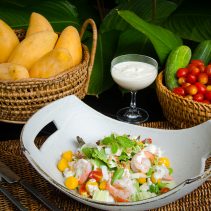 For our 4th anniversary, Chef Butsaya picked the ingredient yogurt out of a hat and was tasked with creating a new dish featuring this healthy ingredient.    “We have always worked to make sure our food is healthy and homemade,” said Chef Butsaya, “so we started off by making our own yoghurt, mixing it with Thai herbs such as mint, ginger and coriander with a splash of tobacco and seasoning. We then used it as a salad dressing for our popular salad, the prawn and mango salad. Et voila!”    Tamarind Village  Ruen Tamarind Restaurant, 50/1 Ratchadamnoen Road, T. Sri Phum  Tel. 053 418 896 ext. 9  Facebook: Tamarind Village Chiang Mai  www.tamarindvillage.com