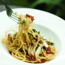 สปาเก็ตตีผัดเบคอน เมนูธรรมดาที่ไม่ธรรมดาด้วยการคัดสรรเส้นสปาเก็ตตีคุณภาพดี เหนียวนุ่ม ผัดกับสมุนไพรและเบคอนกรุบกรอบ และยังมีเมนูน้องใหม่ที่ขึ้นแท่นเป็นเมนูซิกเนเจอร์ ก๋วยเตี๋ยวสุโขทัย สูตรโบราณที่เกิดจากการทดลองทำรับประทานเองและเป็นเมนูพิเศษที่มีเพียงวันละ 5 ชามเท่านั้น แต่เมื่อลูกค้าได้ทานก็ได้รับการชื่นชมในรสชาติ จนกลายเป็นเมนูที่ลูกค้าชื่นชอบและถามถึง เพราะเป็นก๋วยเตี๋ยวสุโขทัยสูตรต้นตำรับจากชาวสุโขทัยแท้ จนกลายเป็นเมนูโปรดของลูกค้าและถูกบรรจุลงในเมนูอาหารของทางร้านในที่สุด