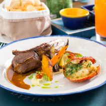 5. Grilled Australian lamb chops with seasonal vegetables & Canadian live lobster: grilled, steamed or thermidor: ขาแกะออสเตรเลียน เสิร์ฟพร้อมกับผักตามฤดูกาล จับคู่กับ กุ้งล็อบสเตอร์สดจากแคนาดา ที่ สามารถเลือกวิธีการปรุงได้ 3 แบบ คือ ย่าง อบ และ เทอร์มิดอร์ (นึ่ง หรือ ต้ม)