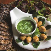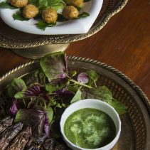 This very rare spinach soup is an old recipe influenced bywestern cuisine, mostly served for breakfast. The spinach is boiled with water and oil before being washed in cold wter then blended with chicken soup. It is served alongside jang-ron, a rolled up ball of dried fish and rice mixed with herbs and spices, coated in egg and grilled.
