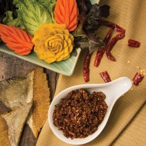 One of Princess Sadab Ladawan’s Royal recipes, fried fish bone chilli sauce, is such a rare dish that most Thais have likely never tried it. It utilises many leftover ingredients in the kitchen including chilli, shallots, garlic, vegetables and fish bones. If you are interested in trying this rare Royal recipe, head over to The FACES Gallery & Gastro Bar to sample this very special chilli dip.