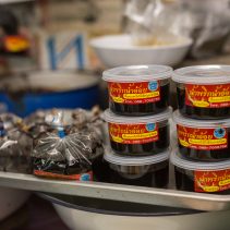 “มะม่วง มะขามป้อม กระท้อน และผลไม้ดองหรือผลไม้แช่อิ่มชนิดต่างๆ จะรับประทานคู่กับน้ำพริกเสมอ ซึ่งน้ำพริกของเราจะนำมากวนกับน้ำอ้อย เป็นสูตรตกทอดมาจากครอบครัวร้านส้มผลไม้ดองแห่งนี้” ป้าจันทรา สร้อยบุญ เจ้าของร้านยายน้อย-ส้มผลไม้ดอง ร้านประจำกาดหลวง (เบอร์โทร: 089 700 5789)