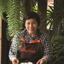 Auntie Pennipa Archawasamit, the owner of Huan Baiboon, used to go to the market with her mother, helping her to sell her homemade kanom klay, or steamed banana cakes. This traditional Thai dessert is made with well-selected banana meat which is then roughly mashed and cooked with flour. Fresh coconut milk is then mixed in to create a steamed cake full of flavour and bursting with aromas. She also serves many other desserts such as bean puffs, pandan leaves layer cake, Thai melon steamed cake, Thai steamed rice-skin dumpling and salted turnip sago for vegetarians. Huan Baiboon also serves coffees and accepts orders for private parties, banquets and religious ceremonies.