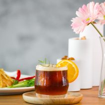 ต้นฤดูฝนหนนี้ มาเริ่มวันใหม่ด้วยเครื่องดื่มที่สร้างความกระปรี้กระเปร่าแก่ร่างกายจาก Nimman Social Cafe and Bar ในเมนูที่มีชื่อว่า Black Naranja หรือ เครื่องดื่มเอสเพรสโซ่หนึ่งช็อต ผสมกับก้อนน้ำแข็งไซรัปรสผลไม้ ซึ่งประกอบไปด้วย น้ำส้มพั้นช์ น้ำสตรอว์เบอร์รี่ และ น้ำเสาวรส ประดับประดาแก้วด้วยใบมินต์สีเขียวและส้ม ก้อนน้ำแข็งรสไซรัปผลไม้จะค่อยๆละลายเคล้ากับความกลมกล่อมของกาแฟ ทำให้เกิดสีสันสวยงามของเครื่องดื่มและมีรสสัมผัสไม่ซ้ำใคร