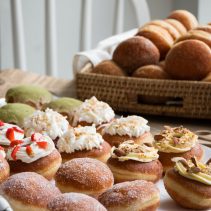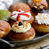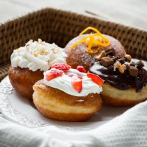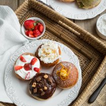 เมื่อเราได้ชิมโดนัทครั้งแรกทำให้รู้เลยว่าโดนัทที่นี่ไม่เหมือนที่ไหน เพราะเป็นลูกกลมๆ มีไส้ตรงกลางแบบที่เรียกกันว่า พันช์กี้ (pączki) หลังจากที่กัดแป้งนุ่มๆ จะรู้สึกถึงรสเปรี้ยวอ่อนๆ ตามมา นั่นเป็นรสชาติของ ‘ซาวร์โด’ แป้งโดนัทแบบฉบับซีแอตเทิล ซึ่งใช้ยีสต์ธรรมชาติจากยุโรปที่เลี้ยงมานาน 50 ปีและแป้งขนมปังจากฝรั่งเศส ก่อนจะออกมาเป็นโดนัทลูกกลมสวยนั้นใช้เวลากว่า 3 วัน เชฟผสมแป้ง พักแป้ง ปั้น และทอดอย่างพิถีพิถัน ทุกขั้นตอนล้วนต้องใช้ความชำนาญ “ตัวโดนัทของเราทำมาจากซาวร์โด ซึ่งใช้ยีสต์ธรรมชาติปลอดสารเคมี ให้ทั้งสัมผัสและรสชาติที่แตกต่างจากขนมปังทั่วไป ยีสต์ธรรมชาติช่วยเรื่องการย่อยอาหาร ทานแล้วไม่อืดท้องเหมือนกินแป้งทั่วไป พอกัดเข้า ไปแล้วจะมีความกรอบนอก และมีรสชาติมาตัดหวาน ไม่เลี่ยนจนเกินไป เราเน้นวัตถุดิบที่ได้คุณภาพถ้าเป็นไส้สตรอว์เบอร์รี่ เมื่อกัดเข้าไปแล้วได้รสชาติของสตรอว์เบอร์รี่เป็นชิ้นเลย” คุณณัฐเล่า