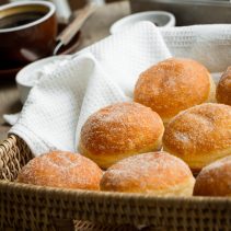 โดนัทลูกกลมโรยด้วยน้ำตาล และผงชินนาม่อน ได้รสสัมผัสของซาวร์โดเต็มคำ