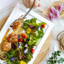 ที่อยากแนะนำเลยก็คือ คาร์โบนาราพิซซ่า แป้งนุ่ม หอมชีส กลมกล่อมด้วยซอสปรุงรสคาโบนาราเนื้อครีมเข้มข้น อีกจานที่อร่อยไม่แพ้กันก็คือสลัดหอยเชลล์ฮอกไกโด นอกจากตัวหอยเชลล์จะนุ่มเด้งแล้ว ผักสลัดกรอบๆ ในน้ำสลัดรสเปรี้ยวหวานยังเข้ากันสุดๆ แถมยังมีเมนูพิเศษ Grilled Whole Chicken อัพเกรดเมนูไก่อบฟางที่เราคุ้นเคยให้กลายเป็นไก่อบฟางสไตล์อิตาเลียน โดยนำไปหมักกับไวน์ขาว กระเทียม พริกไทย และโรสแมรี เสิร์ฟเคียงด้วยมันโซเต และผักโขม หอมกรอบจนต้องบอกต่อ